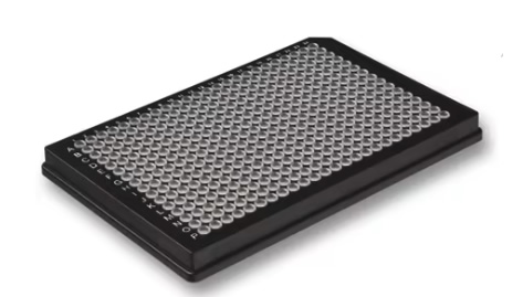 A-Frame 384 Well PCR Plate, Fully Skirted with A24 cut corner, Clear Low Bind wells, Black Ultra Rigid frame, 10 plates per sleeve, 50 plates per box |