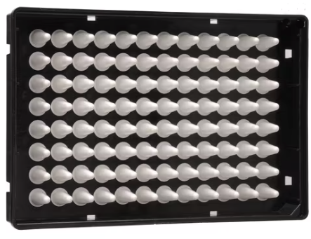 - Low profile wells have maximum capacity of 225μl and a typical working volume of 5μl – 125μl